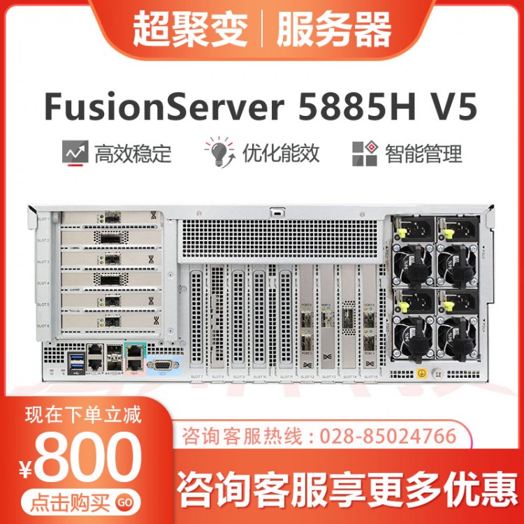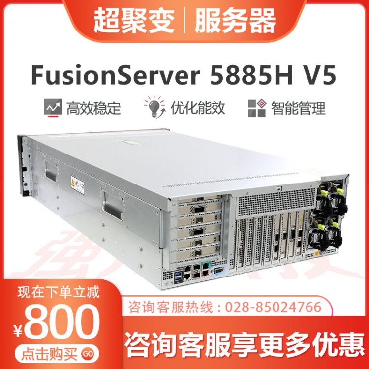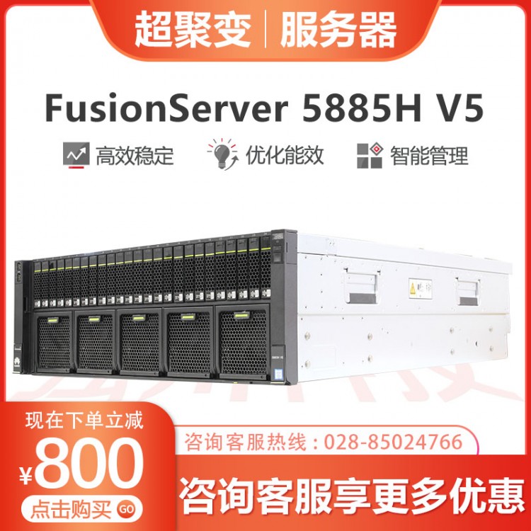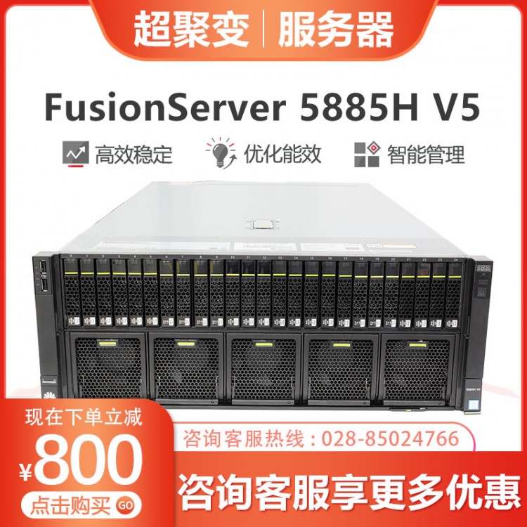超聚變服務(wù)器經(jīng)銷商 超聚變FusionServer RH5885H V5服務(wù)器主機(jī) 4U4路機(jī)架式8盤/25盤位5118/5218 2*5218+64G內(nèi)存+3*1.2TB硬盤 16