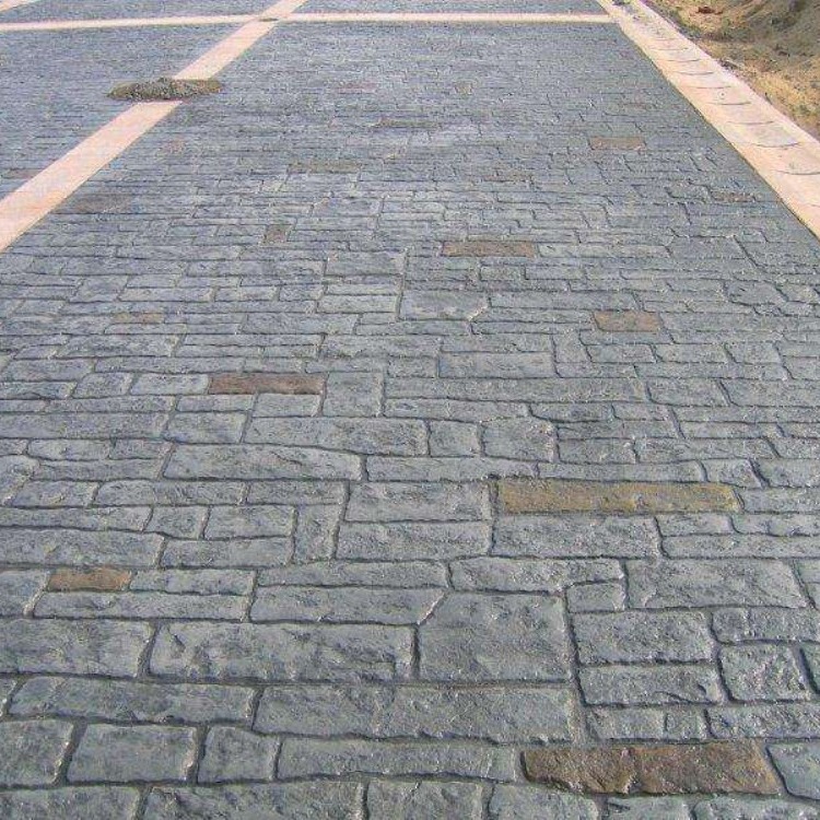 5、使用藝術(shù)地坪模具對(duì)地坪面層進(jìn)行紋理處理。藝術(shù)地坪模具應(yīng)配套使用,首先確定好紋理的分布方向,選好一塊模具放置的位置和角度,然后其它的模具依次緊貼一塊模具放置。彩色混凝土藝術(shù)地坪壓模采用壓模,壓模應(yīng)由技術(shù)較好的人員進(jìn)行作業(yè)以保證壓紋深度一致和模具放置的準(zhǔn)確性。