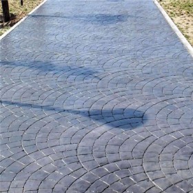 5、使用藝術(shù)地坪模具對地坪面層進(jìn)行紋理處理。藝術(shù)地坪模具應(yīng)配套使用,首先確定好紋理的分布方向,選好一塊模具放置的位置和角度,然后其它的模具依次緊貼一塊模具放置。彩色混凝土藝術(shù)地坪壓模采用壓模,壓模應(yīng)由技術(shù)較好的人員進(jìn)行作業(yè)以保證壓紋深度一致和模具放置的準(zhǔn)確性。